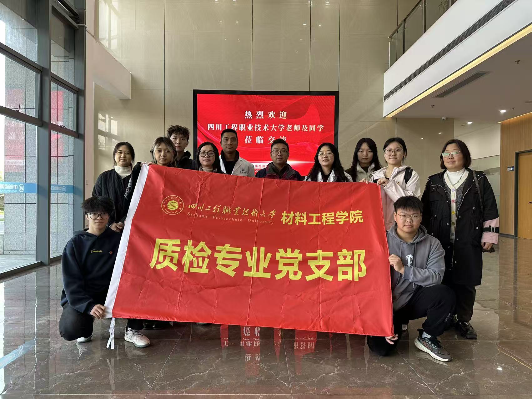 2025年11月26日下午,四川工程职业技术大学材料工程学院质检专业党支部书记孙凯带队,组织9名师生代表前往四川中衡检测技术有限公司开展“党建+专业实践”主题参观学习活动。此次活动紧扣“以党建促专业、以实践强本领”的目标,旨在搭建校企沟通桥梁,让师生直观感受质检行业发展脉搏,助力人才培养与产业需求精准对接。