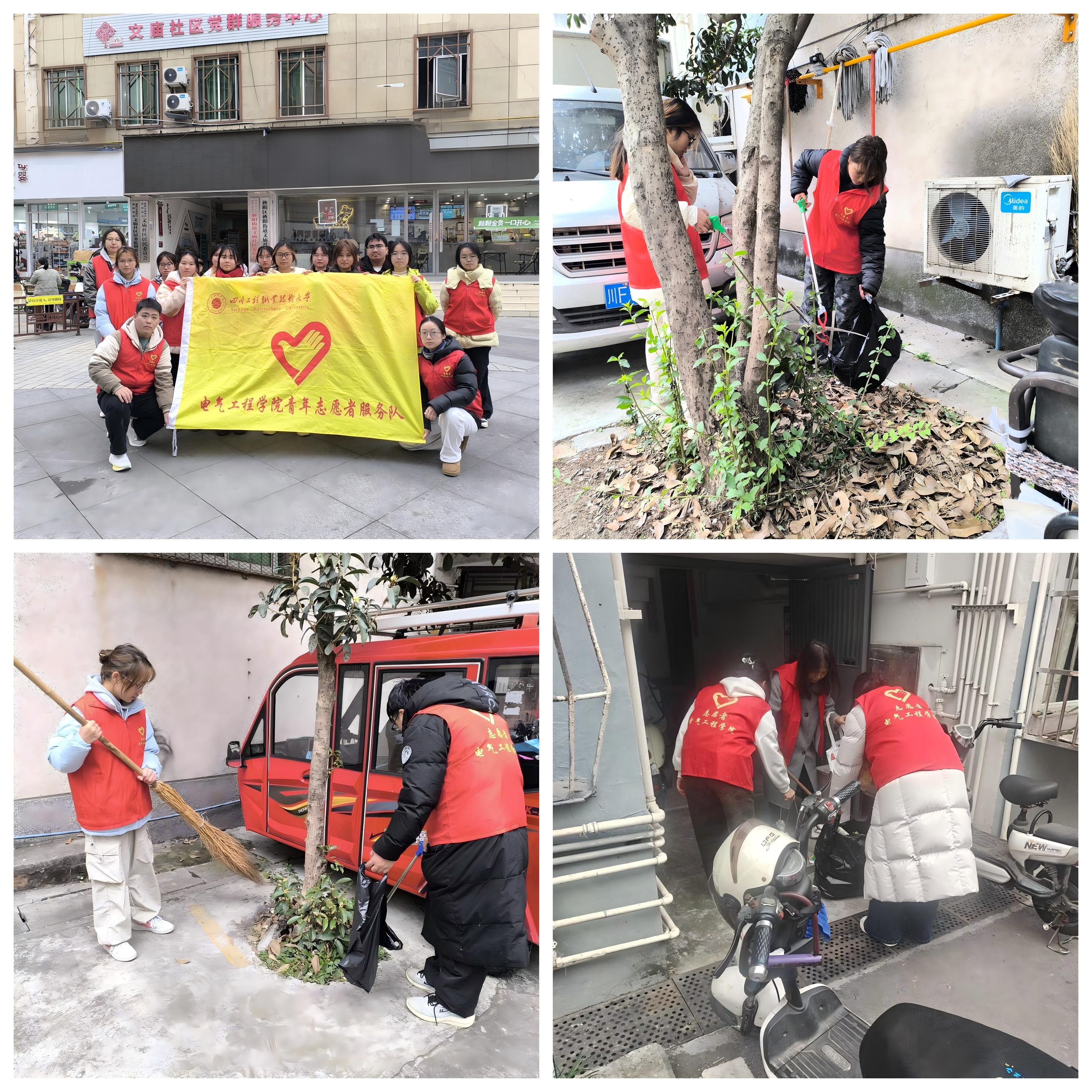 冬日的德阳文庙社区,落叶随风铺落街巷,小区公共区域的整洁度随深秋到来有所下降。为守护社区宜居之美,电气工程学院青年志愿者分部于12月14日在德阳文庙社区开展了以“环境焕新颜, 心灵沐清风”为主题的卫生清洁志愿活动。