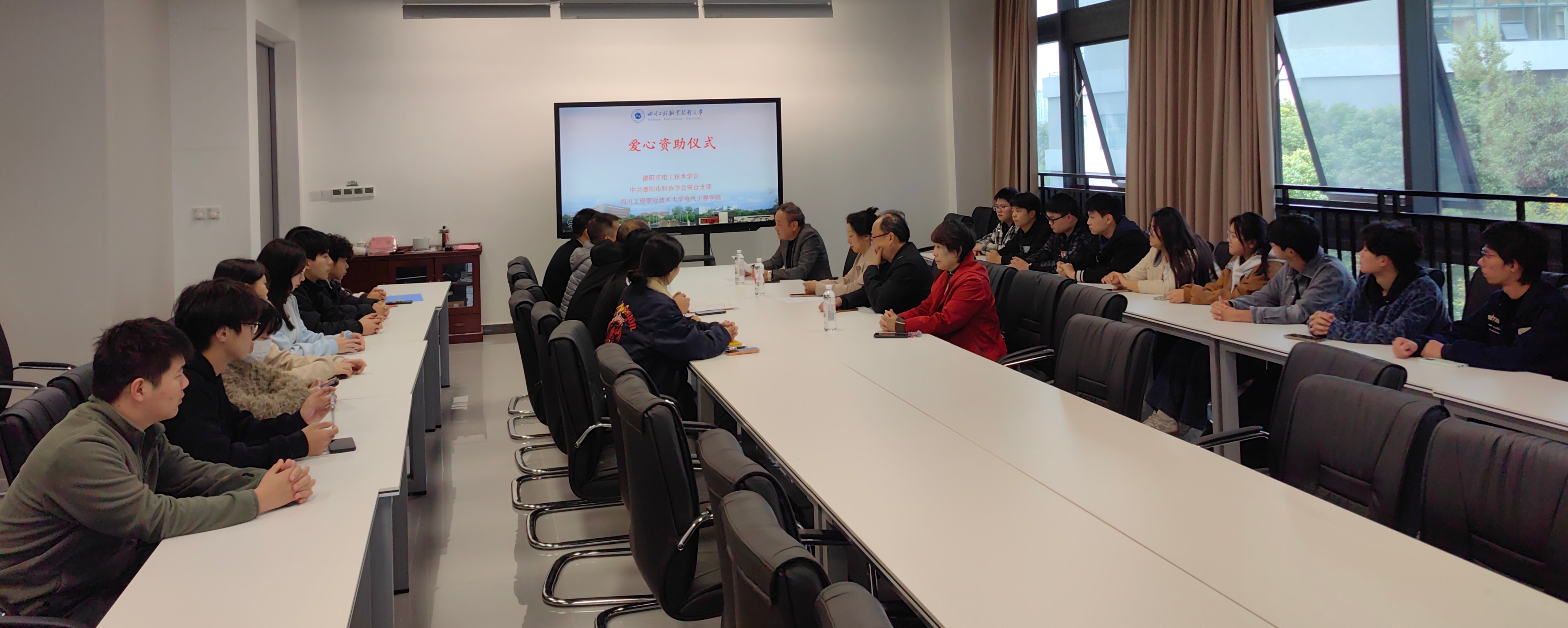 11月11日下午,由德阳市电工技术学会、中共德阳市科协学会联合党支部和电气工程学院联合开展的“爱心资助”活动在数字经济大楼举行了简短仪式。德阳市电工技术学会理事长杜颖一行三人,学校智能装备技术应用创新中心负责人罗光伟,电气工程学院党委负责人张友、学院负责人赖诚、党委分管负责人黄亮以及受助学生、辅导员代表、学生代表共同参与了仪式。