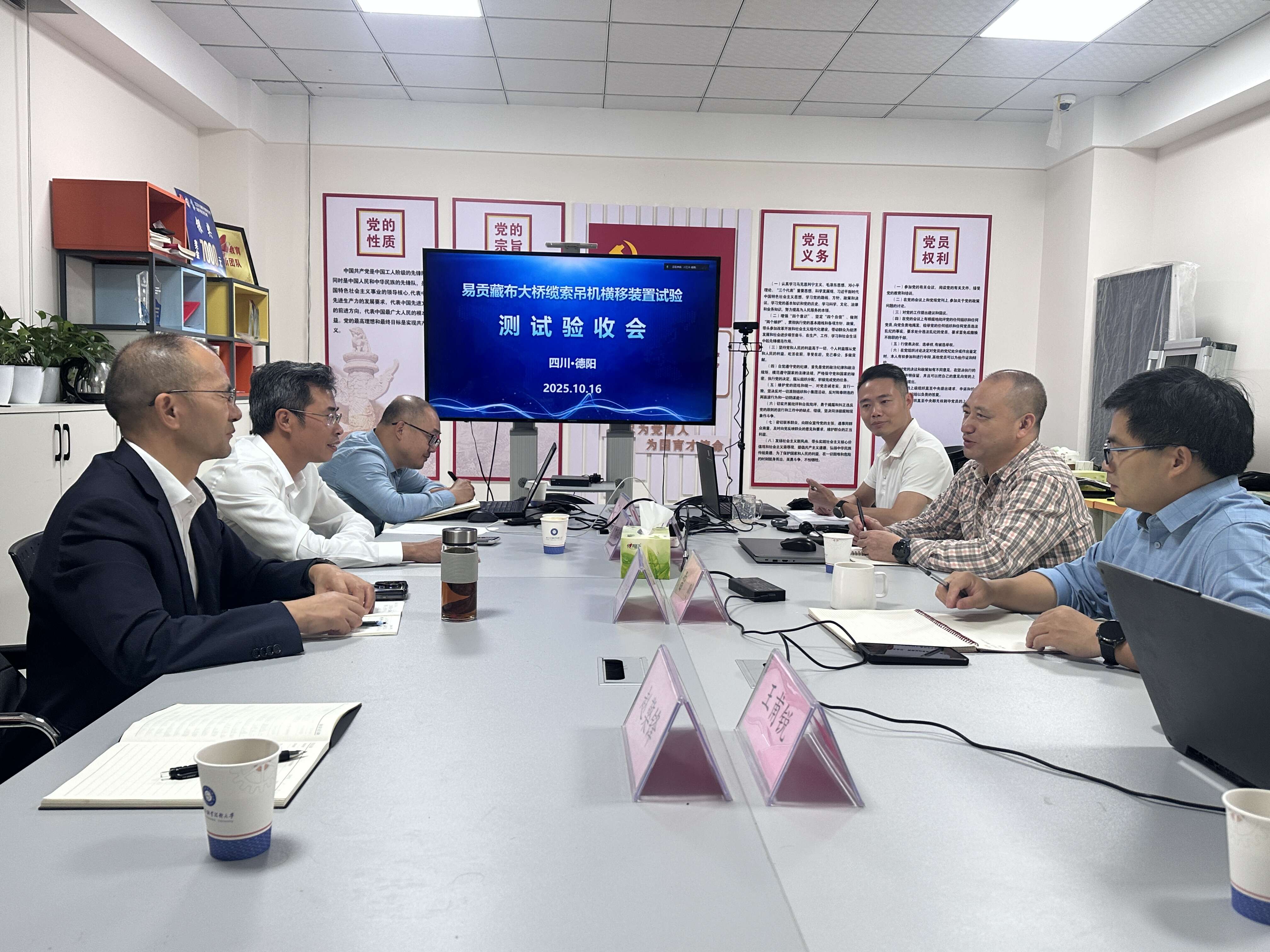 10月16日,中铁二局集团公司叶颜伟、蔡钦好等专家带队到我校开展本项目试验阶段的考察验收工作。专家们现场检查观摩了“易贡藏布大桥缆索吊机横移装置”试验测试请情况。研究中心副主任胡明华系统汇报了项目进展、试验情况和关键技术突破,以及后续工作安排,并细致解答了专家们关切的问题,盛磊老师介绍了优化后的滑套设计方案。
