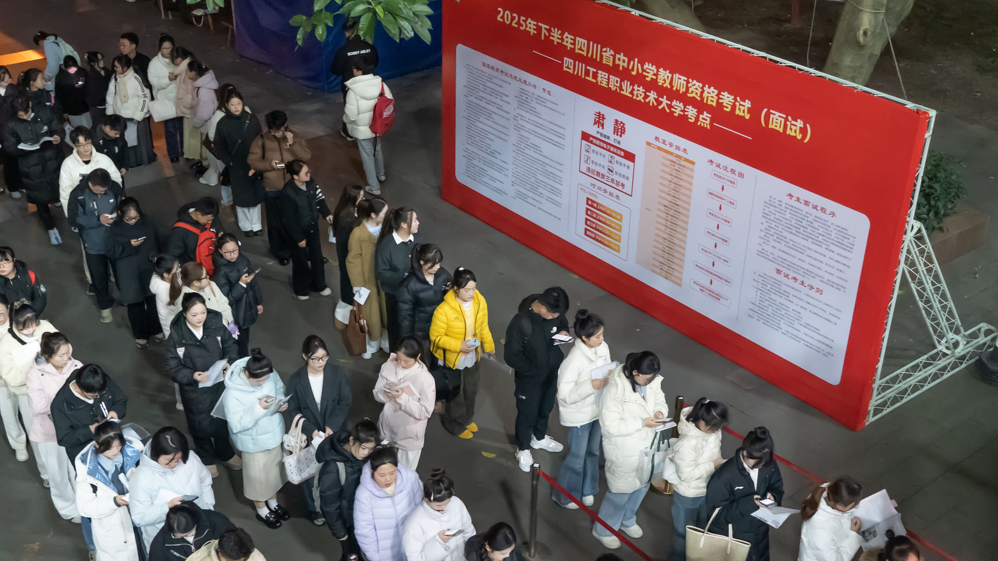 考点严格落实入场管理机制,在入口处设置“双证核验通道”与“违禁品筛查区”,考务人员逐一对考生的准考证、有效身份证件进行原件核验,使用金属探测仪排查手机、电子手表、无线通讯设备等违禁物品,坚决杜绝违规物品带入考场;面试过程中,考官团队秉持“客观、公正、严谨”原则,严格遵照评分细则对考生的教学基本素养、教学实施能力进行综合评审,考场内全程开启高清监控与录音设备,实现评审过程可追溯、可倒查;考务组安排专人在候考区、备考区进行动态巡查,及时劝阻违规行为,维护考场秩序,为全体考生营造公平、公正、透明的考试环境。