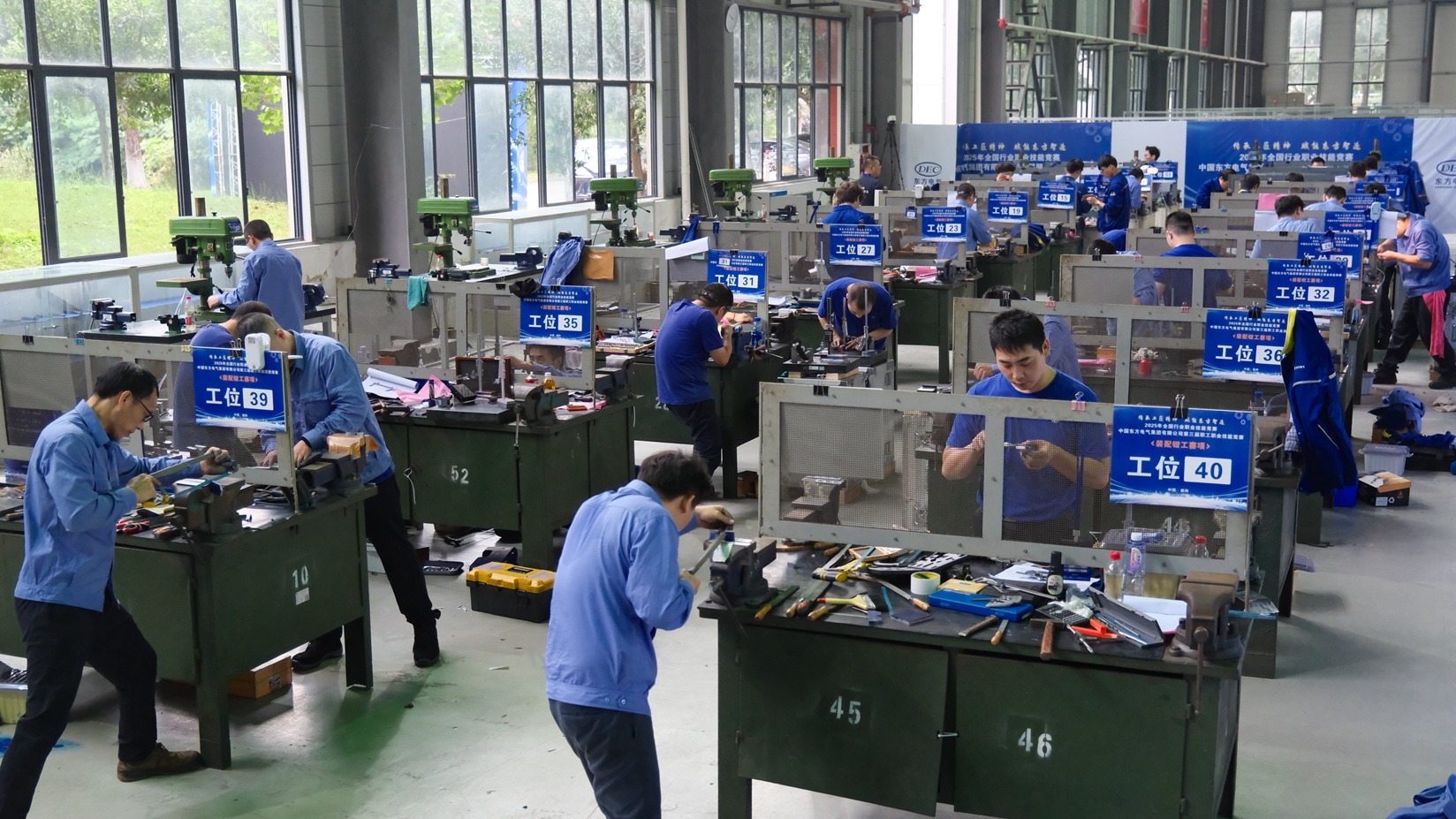 在赛前准备阶段,我校充分发挥国家高技能人才培训基地的资源优势,面向东方电气集团参赛员工开展了系统化、专业化的赛前培训。培训紧密围绕竞赛内容与技术要求,组织专业教师与行业专家共同参与,结合清洁能源装备制造领域的实际需求,为选手量身定制训练方案,提供涵盖理论与实操的全方位辅导。通过系统训练,参赛选手的专业技能与竞赛水平得到有效提升,为大赛顺利举办和选手取得优异成绩奠定了坚实基础。