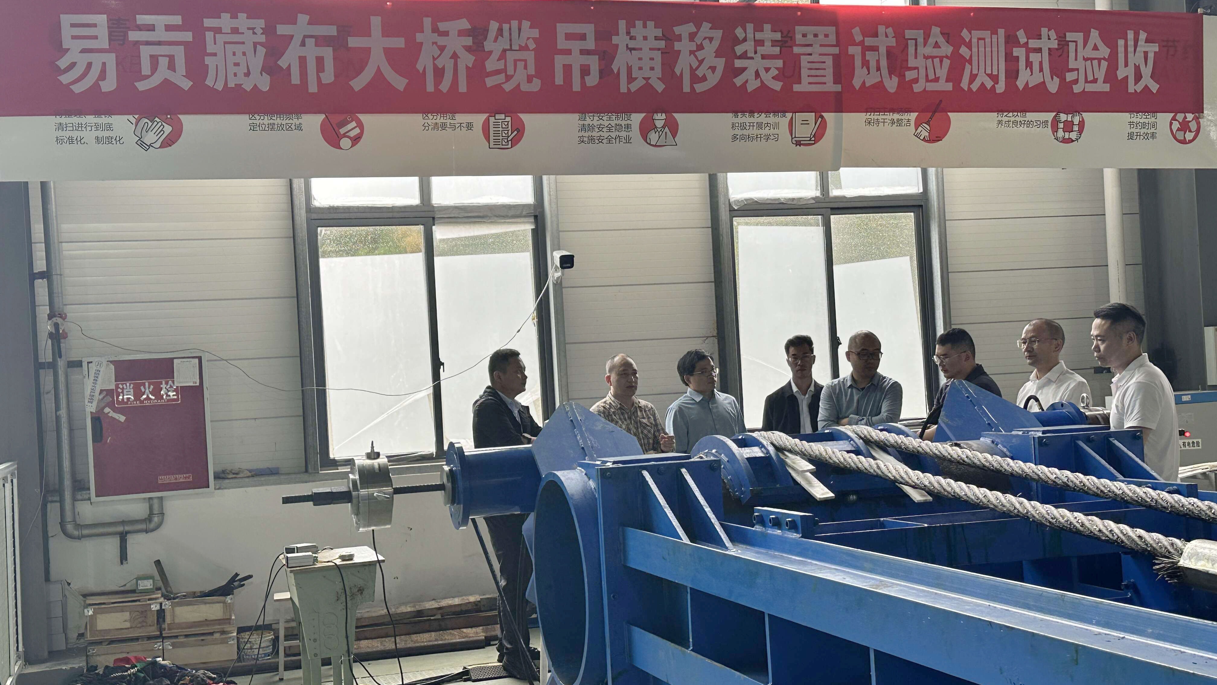 10月16日,中铁二局集团公司叶颜伟、蔡钦好等专家带队到我校开展本项目试验阶段的考察验收工作。专家们现场检查观摩了“易贡藏布大桥缆索吊机横移装置”试验测试情况。研究中心副主任胡明华系统汇报了项目进展、试验情况和关键技术突破,以及后续工作安排,并细致解答了专家们关切的问题。盛磊老师介绍了优化后的滑套设计方案。