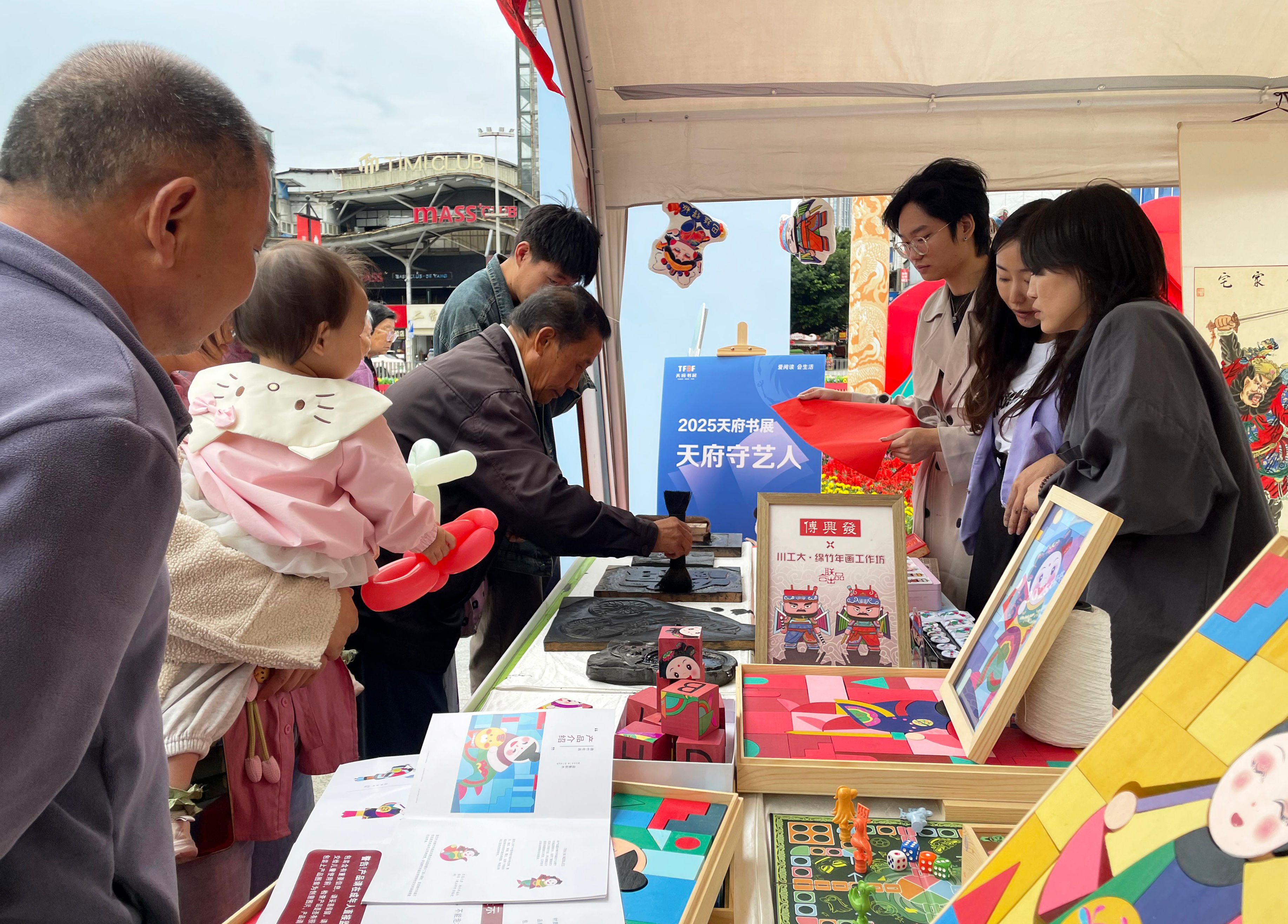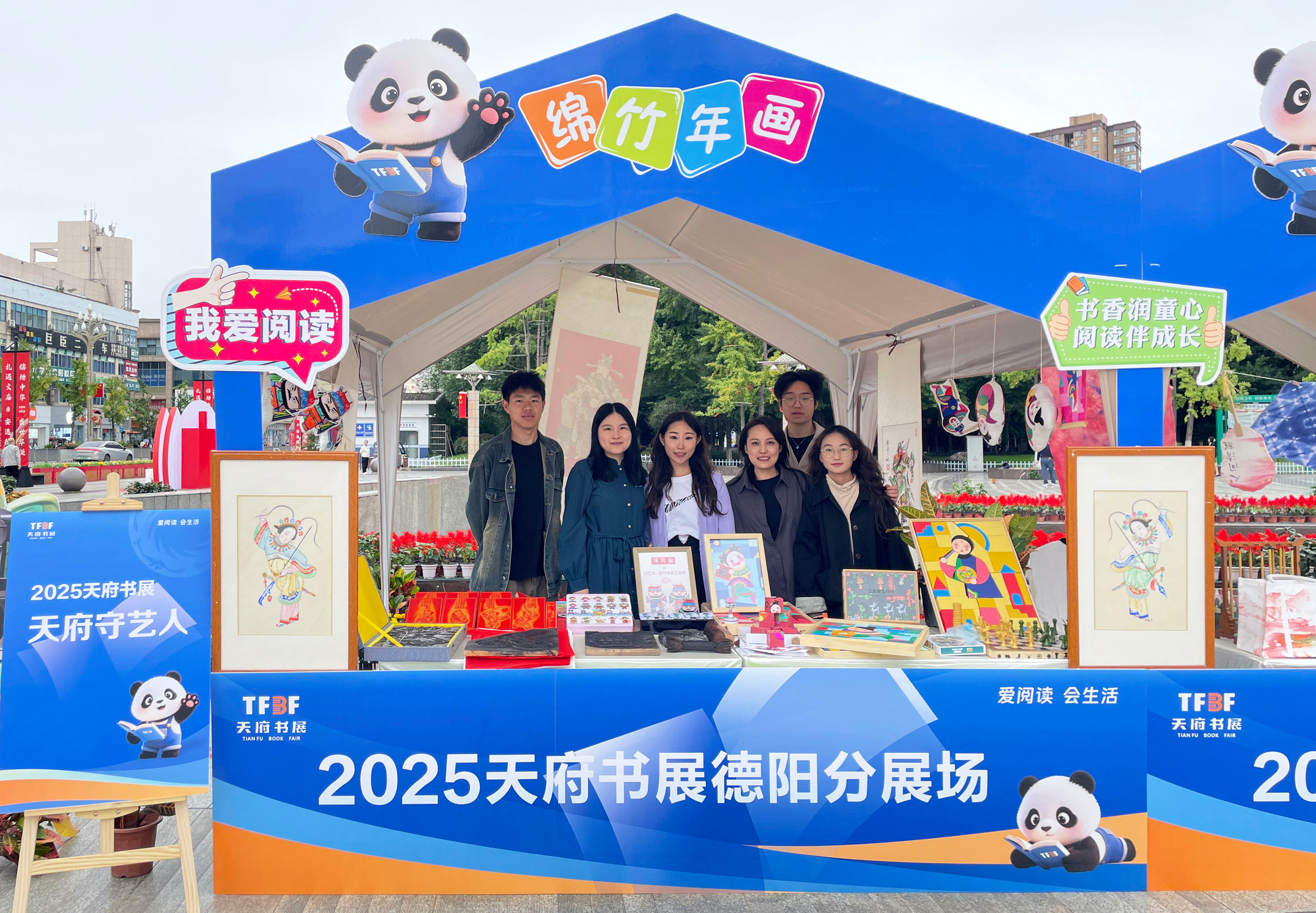 10月17日,2025天府书展在成都盛大启幕,分展场启动仪式首次进驻全省多个旅游景点,我校绵竹年画工作坊受邀参加德阳分展场非遗展演,现场吸引了众多市民、读者与文化爱好者驻足体验,生动展现了巴蜀非遗文化的独特魅力与当代传承活力。本届书展以“书香满天府 安逸读四川”为年度主题,聚焦巴蜀文化焕新,擦亮文旅融合品牌,推动“阅读之美”与“文旅之美”深度交融。同时,举办“天府守艺人”非遗展演活动,让读者在书香中品味四川之韵。