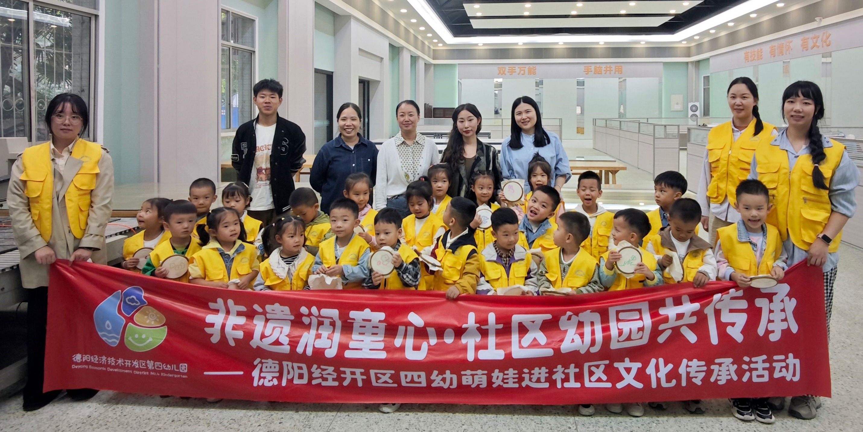 作为四川省第一所公办的职业本科学校,我校始终将非遗传承与人才培养、社会服务深度融合,依托绵竹年画研习社等学生社团,构建“课堂教学—社团实践—社会辐射”的非遗传承体系。此次面向经开区四幼开展专场体验活动,既是我校“非遗美育浸润”工程的重要实践,也是职业本科院校发挥资源优势、服务地方学前教育的生动体现——通过将非遗文化转化为可感知、可参与的美育课程,既为幼儿播下文化传承的种子,也为非遗活态传承注入青春力量,更搭建起高校与中小学校、幼儿园协同传承中华优秀传统文化的桥梁。