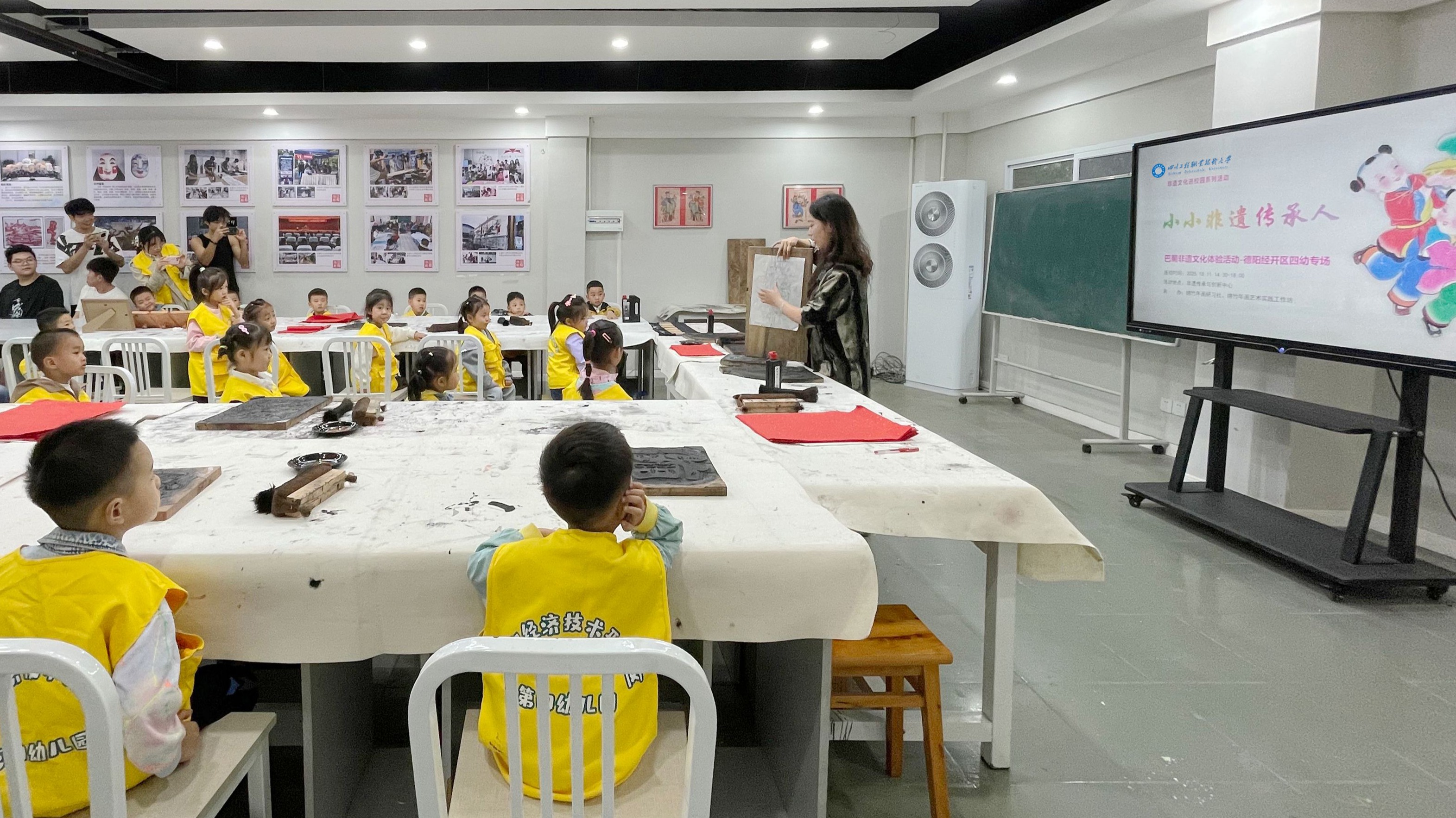为深入贯彻落实中华优秀传统文化传承发展战略,充分发挥职业本科在文化传承与社会服务中的辐射带动作用,10月11日,由我校非遗传承与创新中心主办、绵竹年画研习社承办的“小小非遗传承人”巴蜀非遗文化体验活动(经开区四幼专场)顺利开展。经开区四幼师生走进非遗课堂,沉浸式感受巴蜀非遗的独特魅力,开启一场兼具知识性与实践性的传统文化美育之旅。