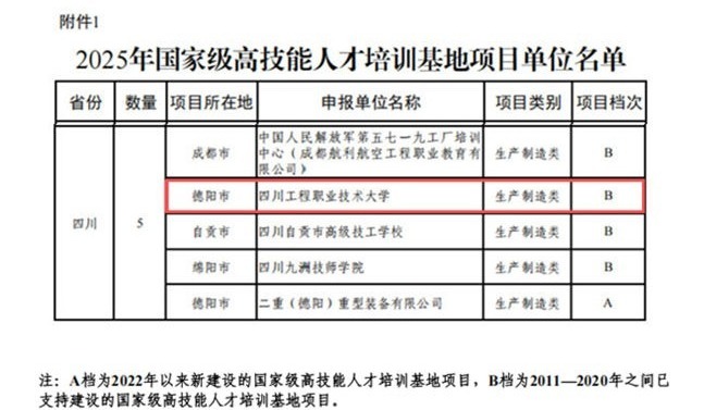 近日,人力资源社会保障部办公厅、财政部办公厅联合印发通知,公布2025年国家级高技能人才培训基地项目单位备案名单,我校成功入选,再次获批国家级高技能人才培训基地。