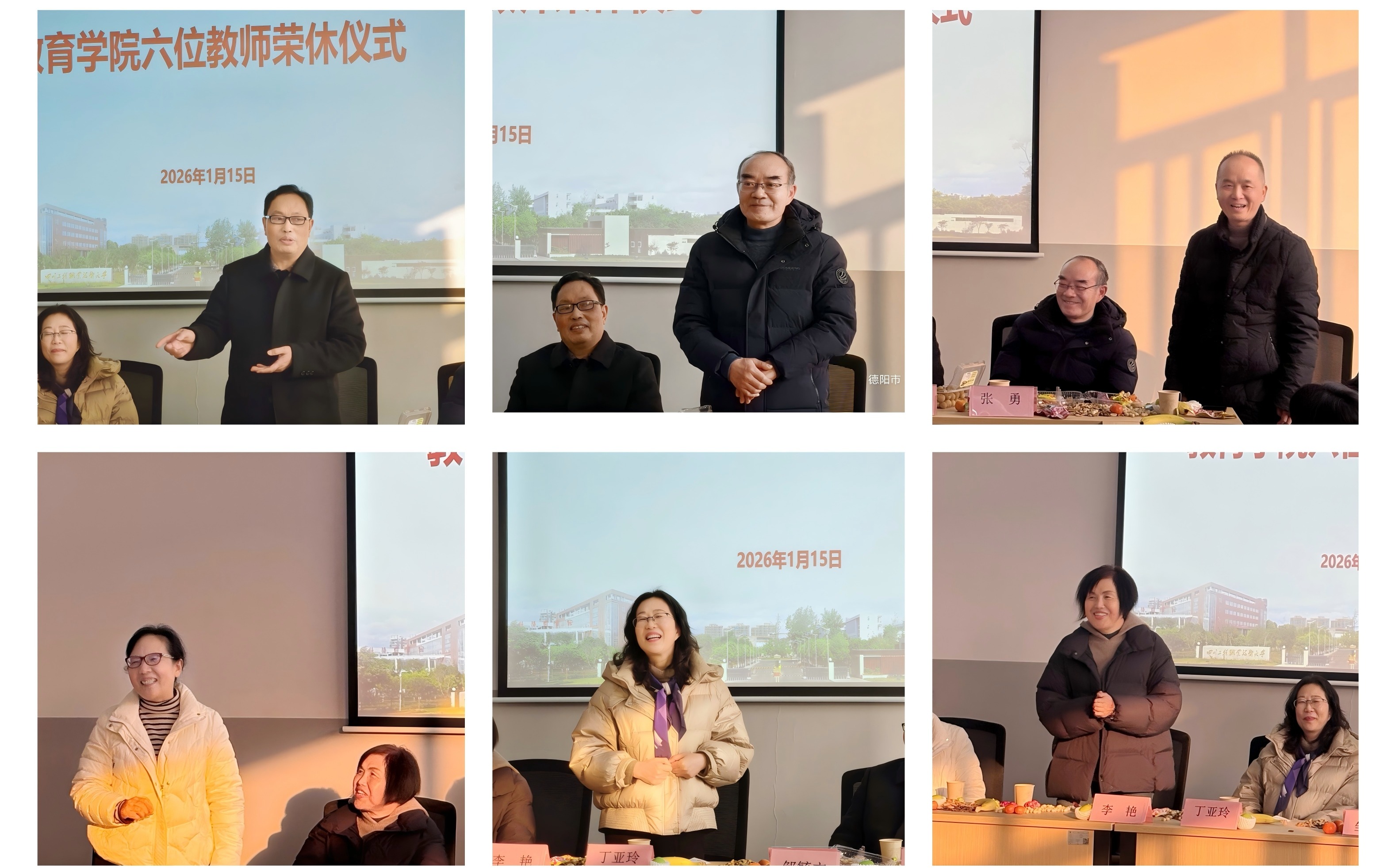 冬阳暖照,情谊绵长。1月15日,教育学院为邹毓文、丁亚玲、刘英、张勇、徐荣贵、李艳六位深耕杏坛数十载的前辈教师,举办荣休仪式。学院党政领导班子孔祥阳、李蓉、赵铁柱与全体教职工齐聚一堂,以最诚挚的敬意致敬前辈的坚守奉献,以最殷切的期许共话教育初心的传承延续。