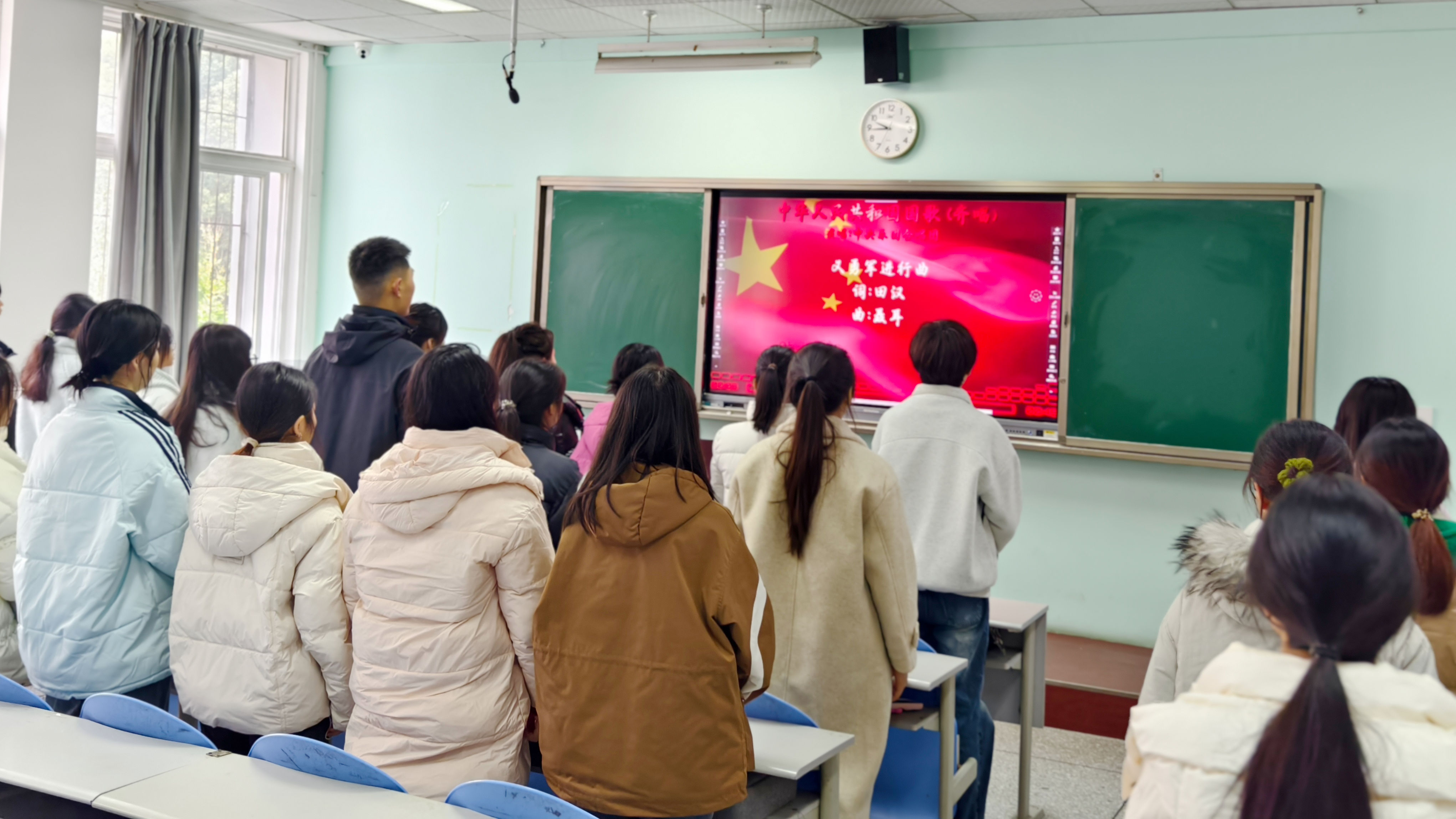 仪式在激昂嘹亮的《光荣啊,中国共青团》团歌声中圆满落幕。(文/图 经济管理学院、软件工程学院)