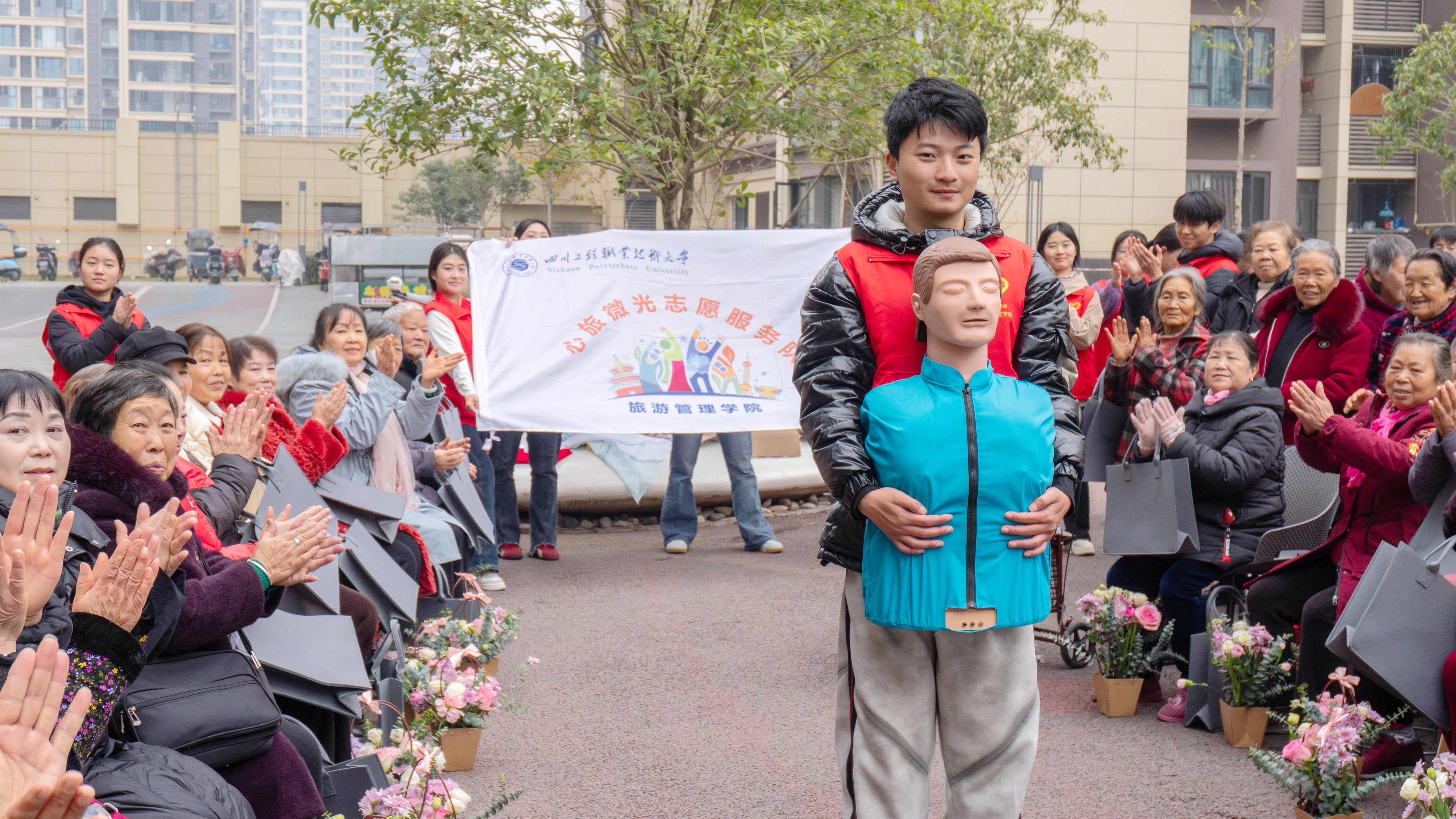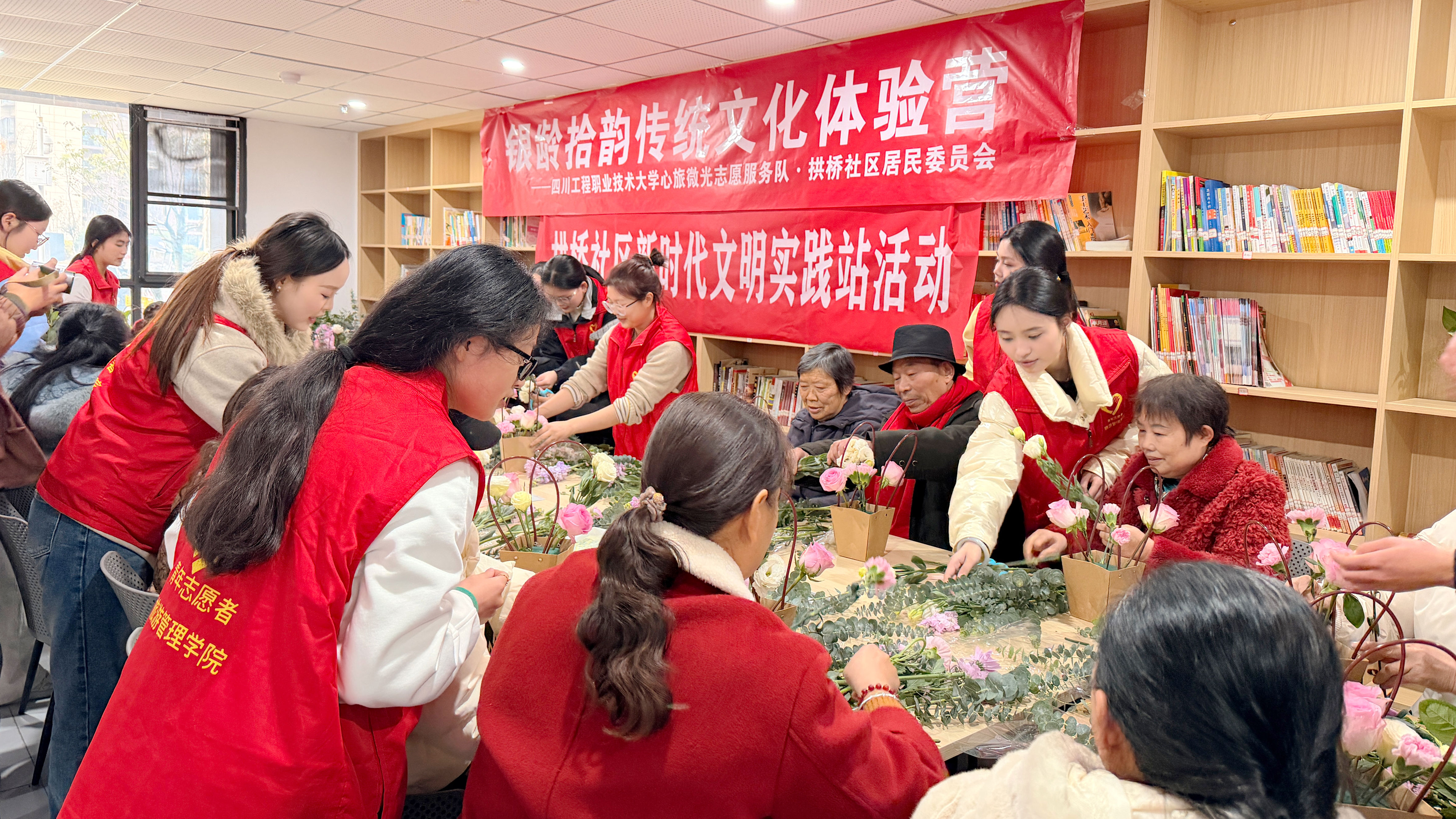 体验营以“文旅助老”为主题,精心设计了“花艺雅韵”“健康护航”与“安全常记”三个环节。志愿者们依托专业所学,带领长者体验传统花艺搭配,传递节气雅趣;通过生动展演普及冬季健康养护知识;结合互动问答提升居家安全防范意识。活动温馨有序,实现了文化浸润、健康关怀与平安教育的有机融合。