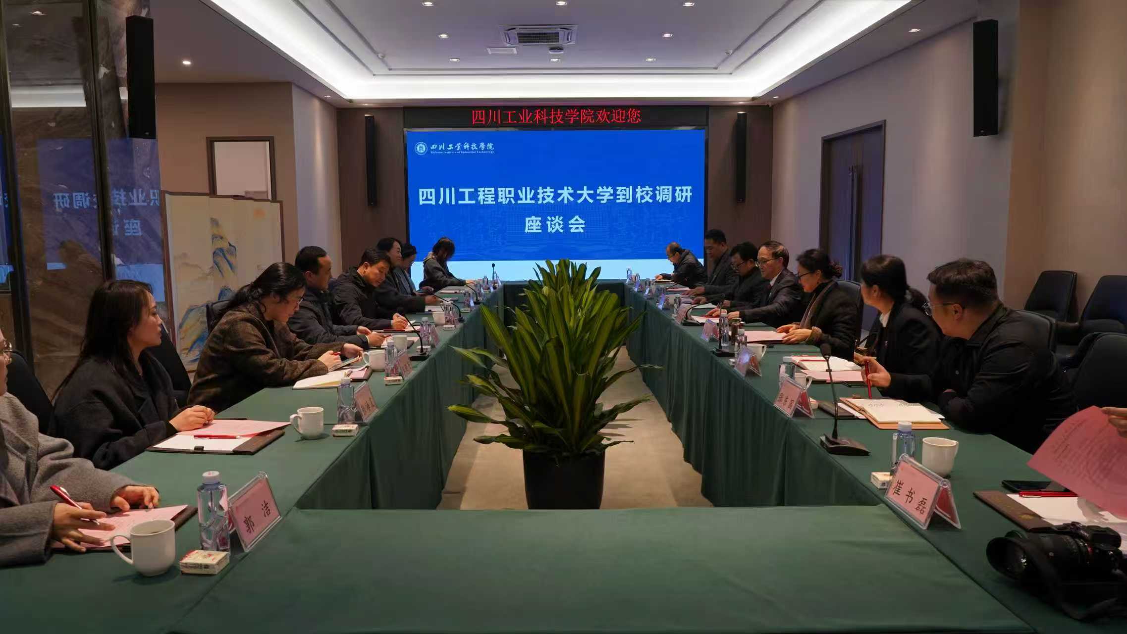 调研组首先在罗江校区图书馆会议室与四川工业科技学院开展座谈交流。该校党委书记袁闻聪详细介绍了学校办学特色,重点阐述了以工学为主、多学科协调发展的布局,以及在产教融合、国际交流和思政课建设等方面的显著成效,表达了两校在人才培养、学科建设等领域深化合作的殷切期望。随后,调研组观看了四川工业科技学院宣传片。