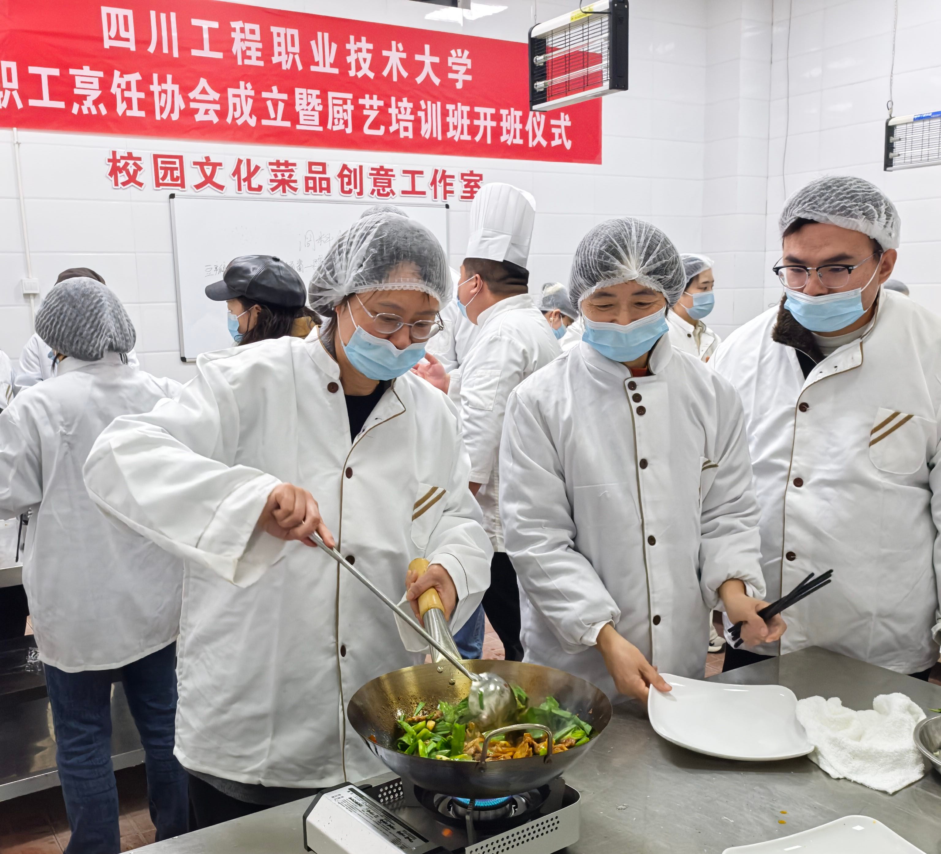 为丰富教职工业余文化生活,提升生活技能与幸福感,促进同事间的交流与合作,在校工会的组织下,四川工程职业技术大学教职工烹饪协会于11月27日在学校桃苑餐厅三楼“校园文化菜品创意工作室”成立,并分别于当天和12月4日举行了两期厨艺培训课,两期培训课共有50余名教职工参加。
