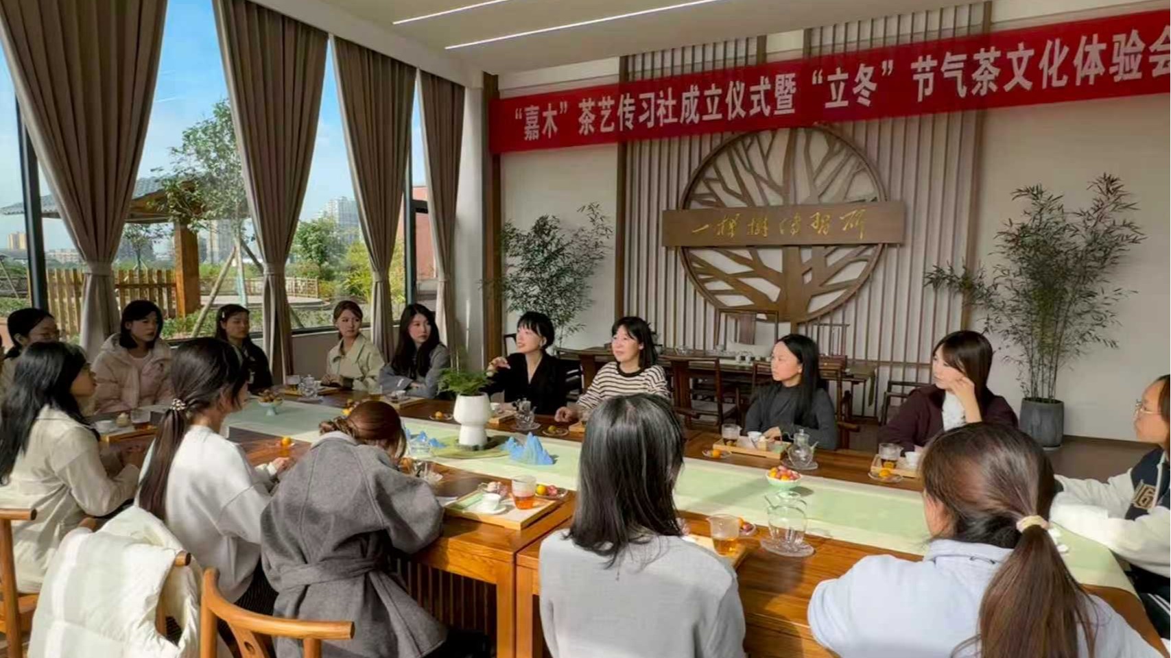 11月11日,为弘扬中华优秀传统文化,丰富校园美育实践,我校艺术团“嘉木”茶艺传习社成立仪式暨“立冬”节气茶文化体验会在南校区一棵树传习所温情举行。活动以“嘉木启新程,茶香暖立冬”为主题,吸引了全校众多师生茶文化爱好者齐聚一堂,共品茶香雅韵。