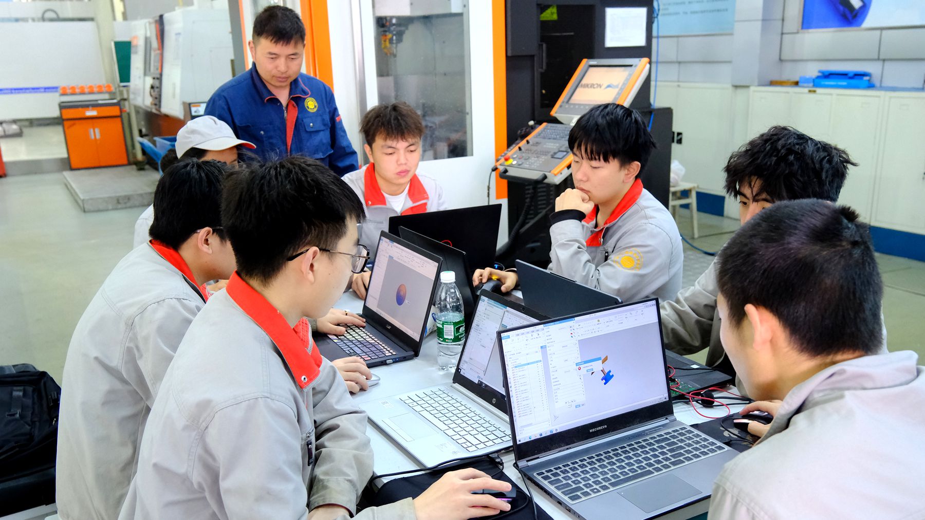 单成林正在对学生进行五轴加工编程指导