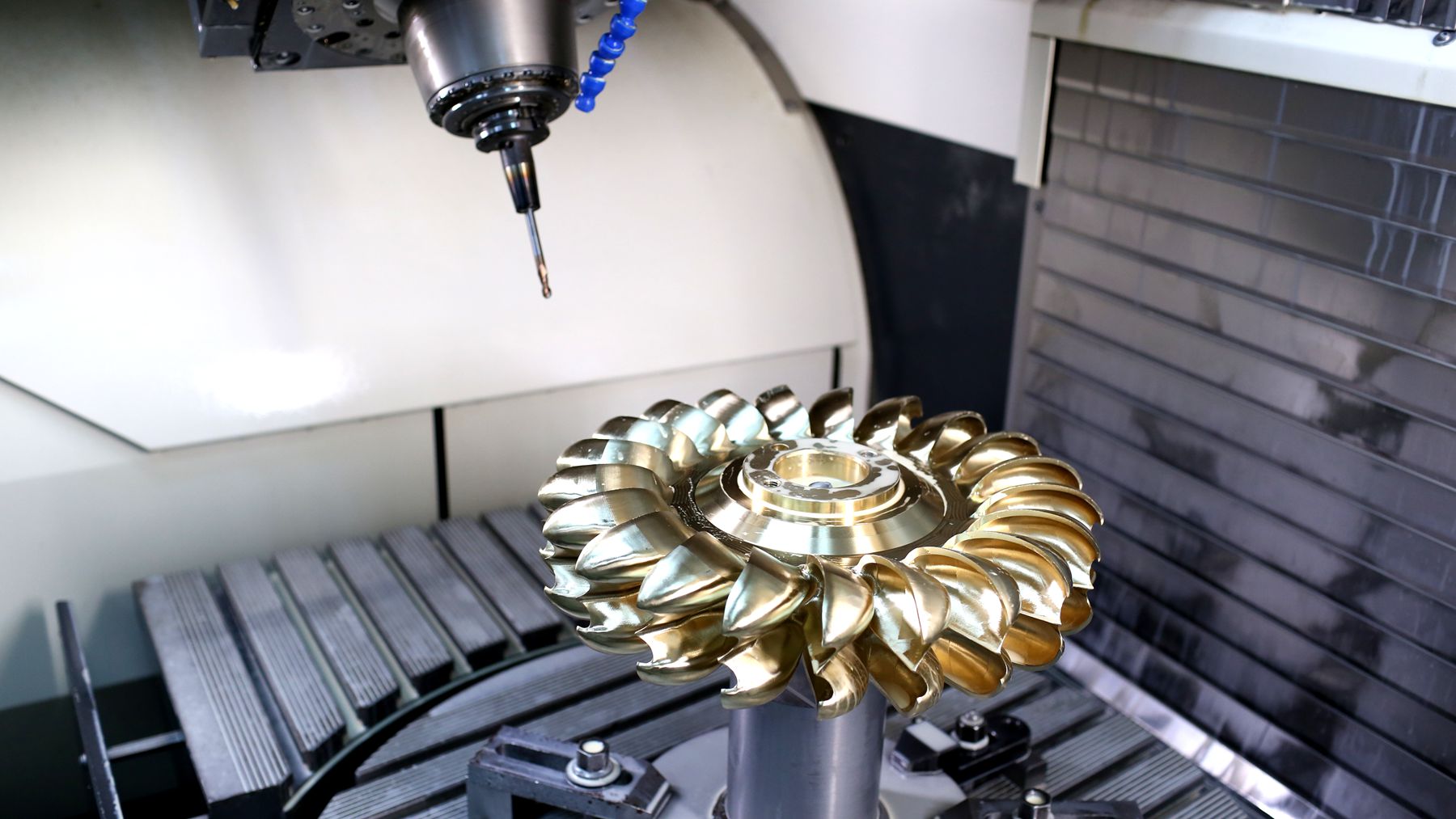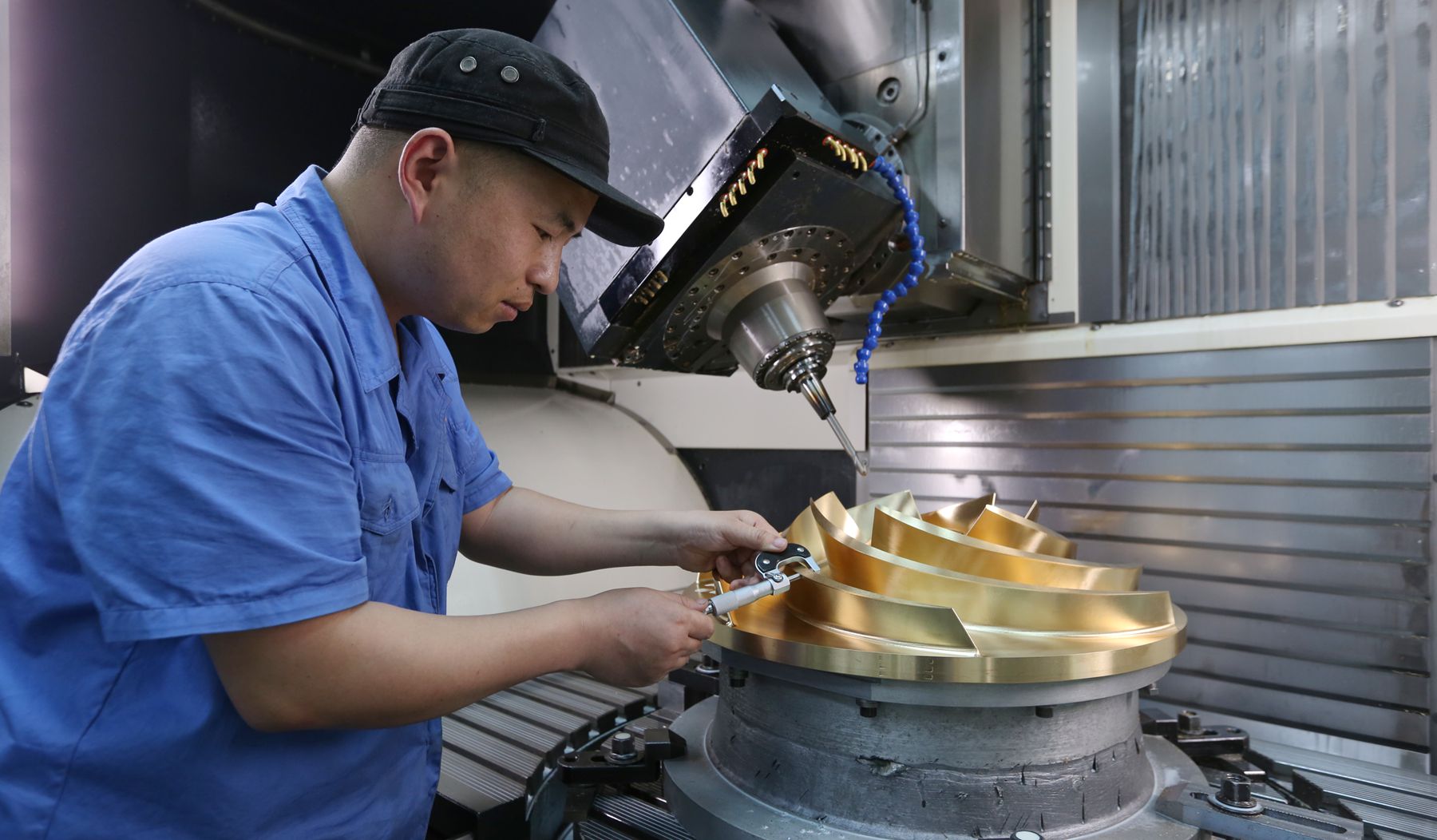 近年来,东方电机相继实现白鹤滩百万千瓦水电机组、高水头冲击式水轮机等一系列重大技术突破,标志着我国水电装备进入世界领先行列。作为东方电气集团东方电机有限公司长期合作的零部件配套加工骨干,单成林深知自己肩上承担的责任。作为一线技术人员,他承担的主要任务包括东方电机研试中心的转轮叶片、水斗等核心部件的试制与加工。这些零件结构复杂、精度要求极高,往往代表着当前水轮机研发的最高难度。面对挑战,单成林从未退缩。他认真研究图纸工艺,反复优化加工方案,耐心调试五轴数控设备,时常为了一个参数的完美、一道工序的优化,在机床边一站就是十几个小时。