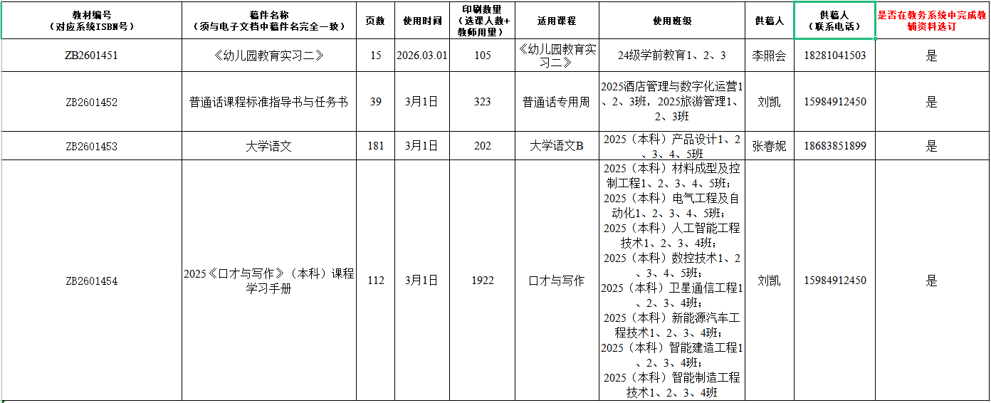 经教育学院教材工作学科专业组审查,学院党政联席会同意,2025—2026学年第二学期拟选用自编胶印资料4种,现将其基本信息予以公示: