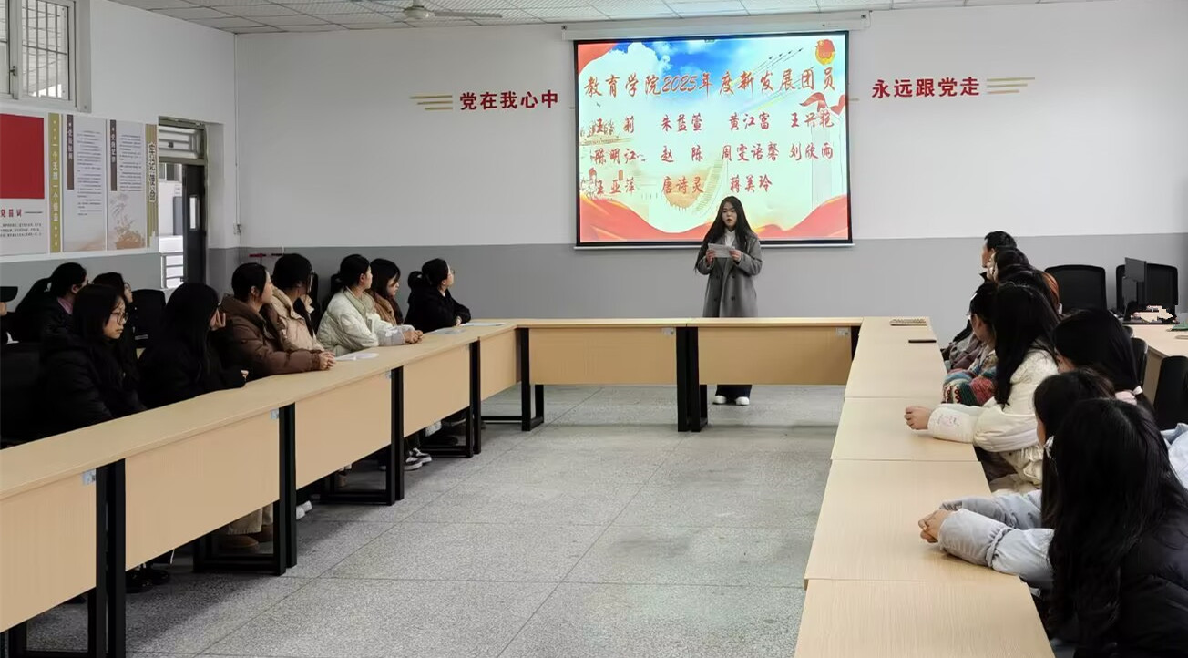 12月23日,教育学院在党建活动室举行2025年新团员入团仪式。学院团总支书记赵铁柱、2023级辅导员赵薇、2024级辅导员陈亚希出席仪式,仪式由团总支学生分会秘书长王兴艳主持。
