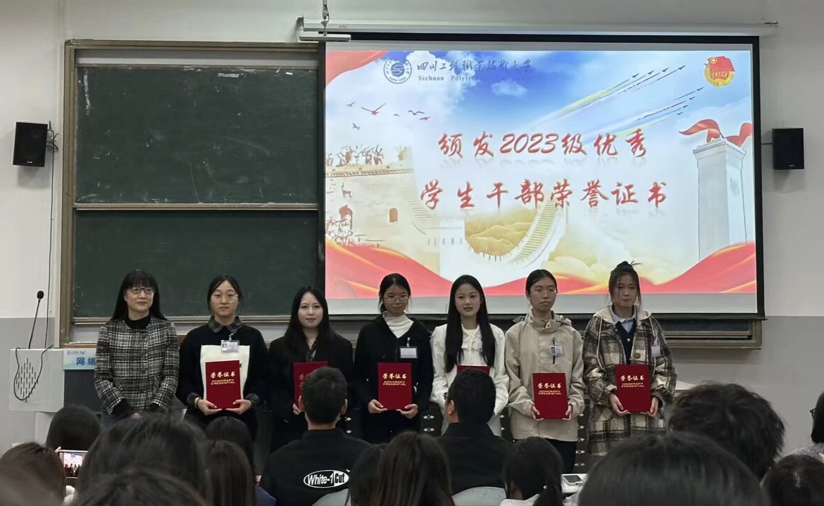 大会在国歌声中启幕。上一届学生分会主席冯明莉作工作总结,回顾思想引领、文体活动、志愿服务等方面的工作成效,分享工作经验与感悟。随后,与会老师为2023级离任干部颁发荣誉证书,对优秀部门和优秀干事进行表彰,并向新当选干部颁发聘书。