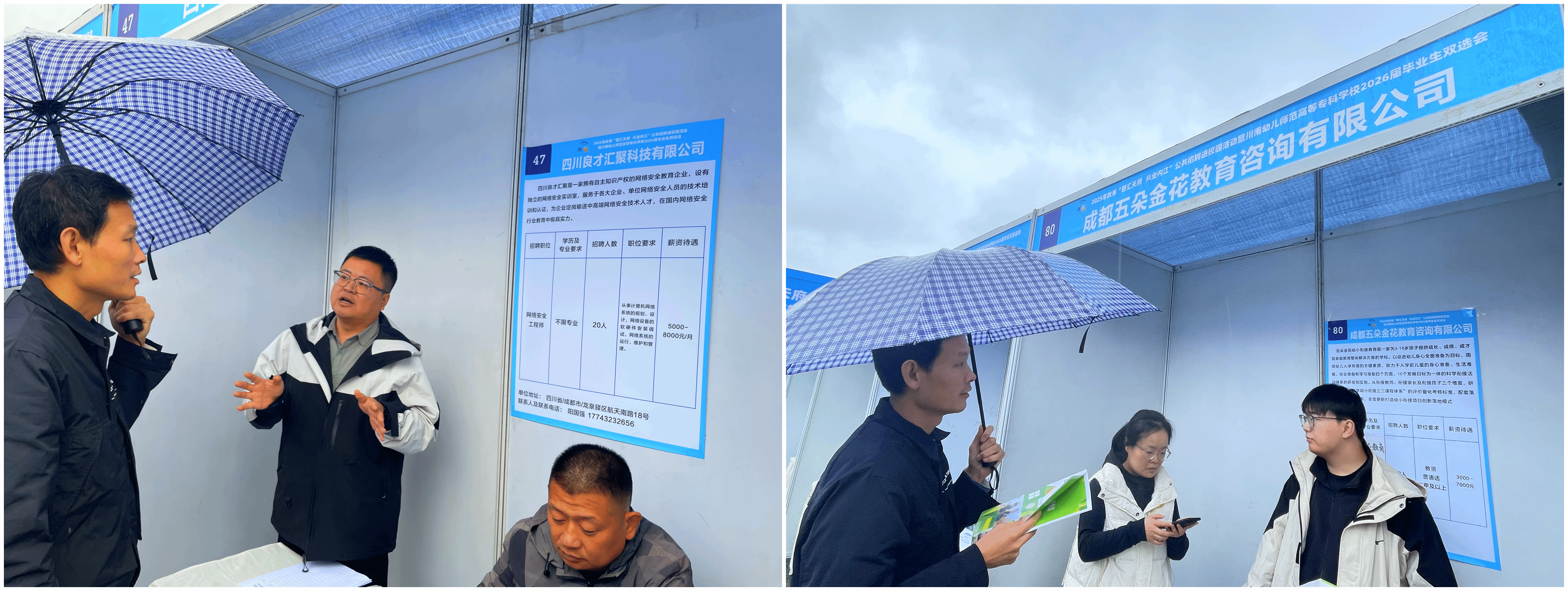 为深入贯彻落实教育部 “访企拓岗促就业”专项行动要求,进一步深化校企合作、校社协同,拓宽毕业生就业渠道,11月1日,教育学院党总支副书记赵铁柱与2026届毕业生辅导员赵薇,在川南幼儿师范高等专科学校双选会现场先后走访四川良才汇聚科技有限公司、深圳市深家网络信息服务有限公司、成都五朵金花教育咨询有限公司、四川省索玛慈善基金会四家单位,围绕人才培养、实习就业、项目合作等议题展开深度交流,为学院2026届及后续毕业生搭建更优质的职业发展平台。