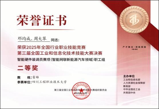 13 教师参加第三届全国工业和信息化技术技能大赛获全国二等奖