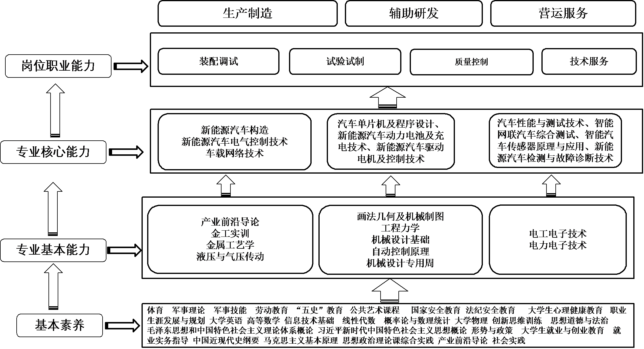 本专业培养能够践行社会主义核心价值观,传承与创新技能文明,德智体美劳全面发展,具有较高的科学文化水平,良好的人文素养、科学素养、数字素养、职业道德,爱岗敬业的职业精神和精益求精的工匠精神,一定的国际视野,掌握较为系统的基础理论知识和技术技能,具备一定的技术研发与改造、工艺设计、现场管理、技术实践能力,能够从事科技成果、实验成果转化,能够生产加工中高端产品、提供中高端服务、解决较复杂问题、进行较复杂操作,具有一定的创新能力,具有较强的就业创业能力和可持续发展能力,具备职业综合素质和行动能力,面向新能源汽车制造业的汽车工程技术人员、汽车运用工程技术人员等职业,能够从事新能源整车、零部件及配套设施的装配调试、试验试制、质量控制、技术服务的“下得去、留得住、干得好”的高端技能人才。
