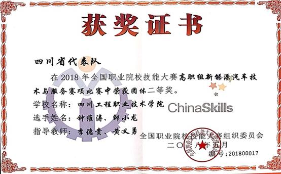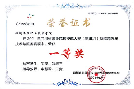 新能源汽车工程技术专业依托的新能源汽车技术专业是四川省首批双高专业群(A档)牵头专业、全国机械行指委骨干专业、教育部现代学徒制试点专业,专业教师团队是四川省第二批教师教学创新团队,是一支“教学理念先进、业务水平高、国际视野宽”的结构化教学创新团队,荣获国家级教学成果一等奖1项、二等奖2项,省级教学成果特等奖1项、一等奖1项,现有四川省技术能手2人,四川工匠2人,德阳市“英才计划”1人,德阳市技术能手1人。