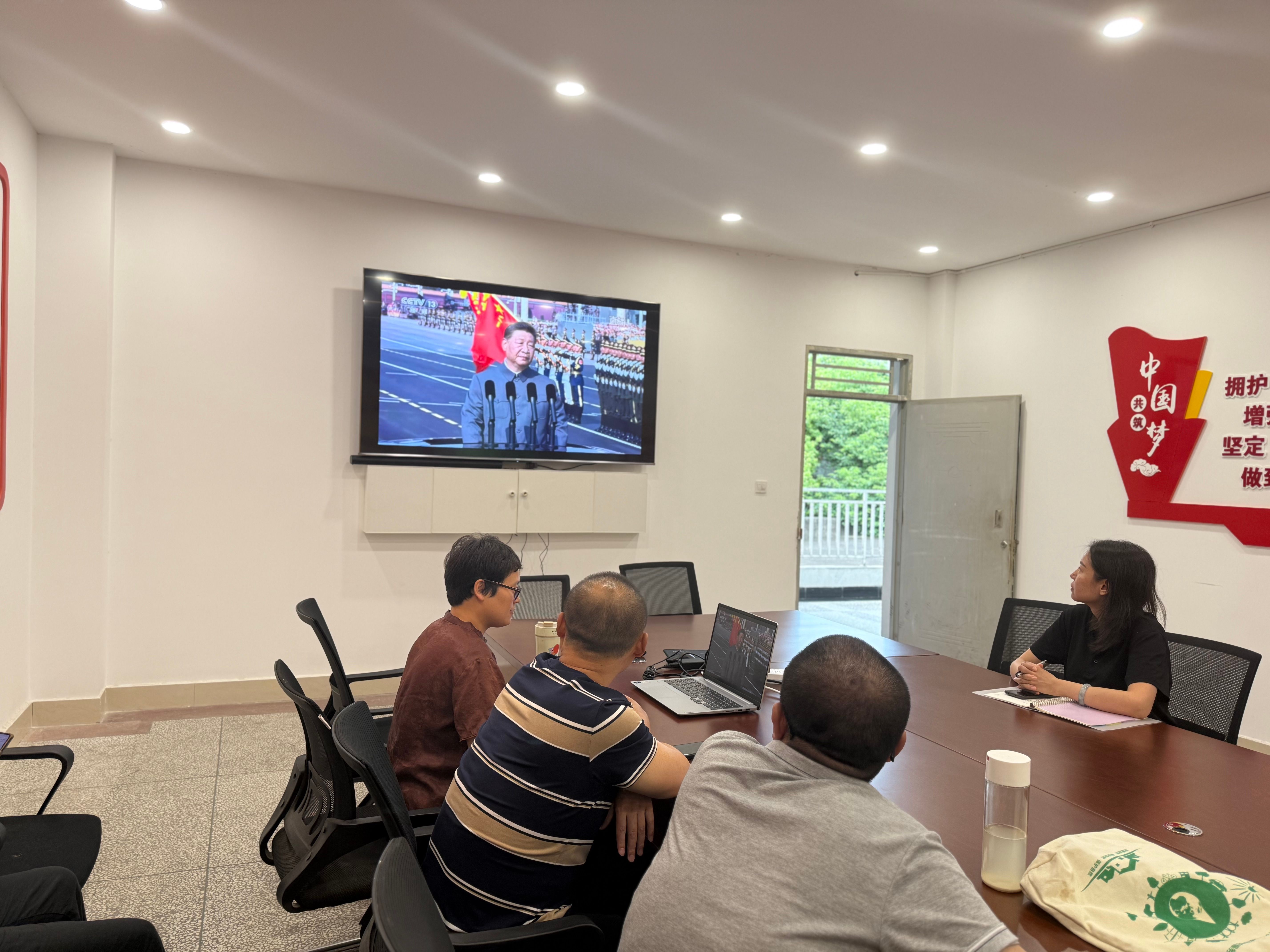 直播画面中,将士们目光如炬、步伐铿锵有力,新型国防装备依次亮相,充分展示了在党的坚强领导下我国国防和军队现代化建设取得的辉煌成就,彰显了捍卫国家主权、安全和发展利益的坚定决心。一幕幕震撼场景、一声声铿锵誓言,让观看直播的老师们心潮澎湃、热血沸腾,不时被震撼的画面和热烈的氛围所感染。