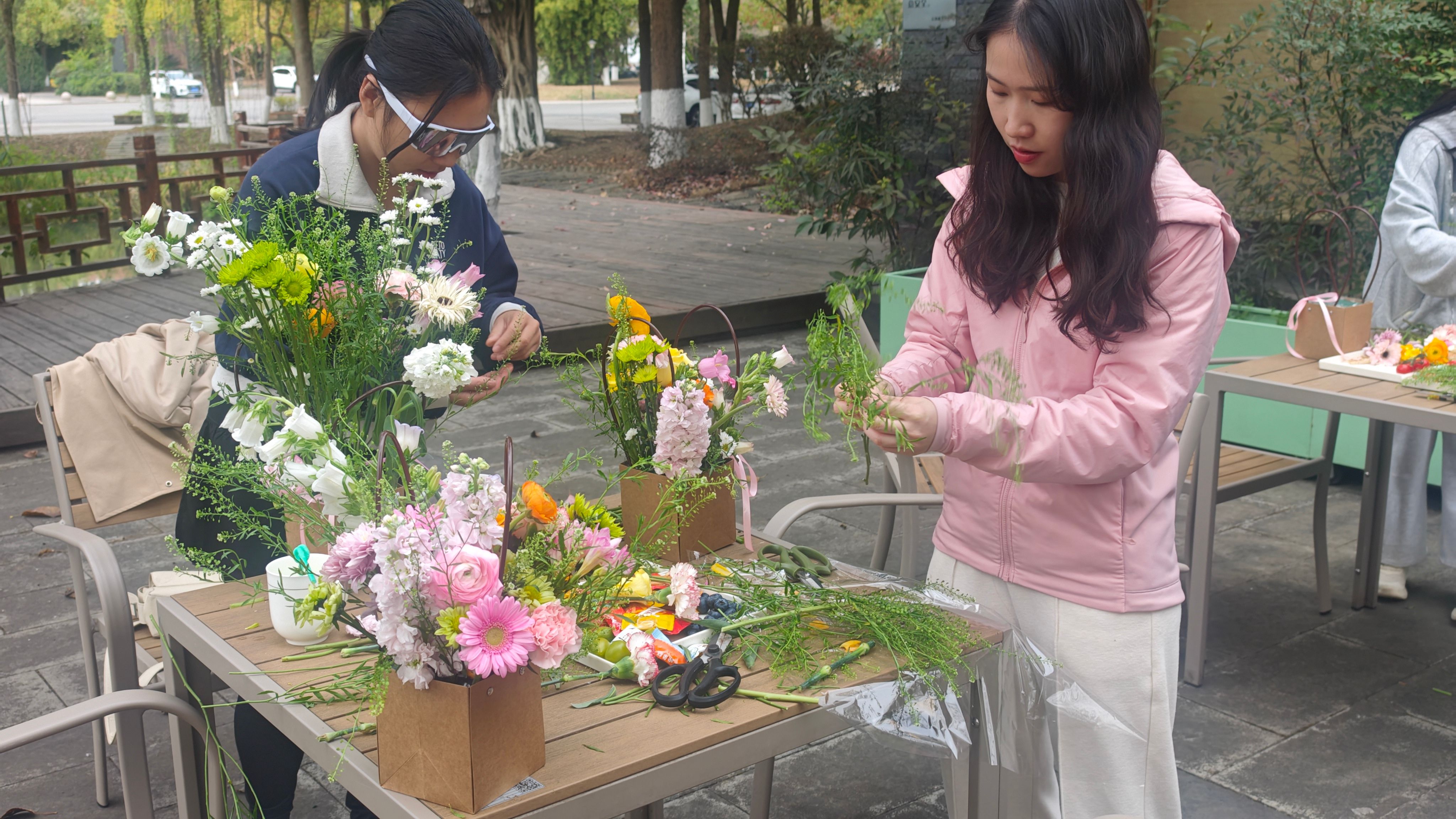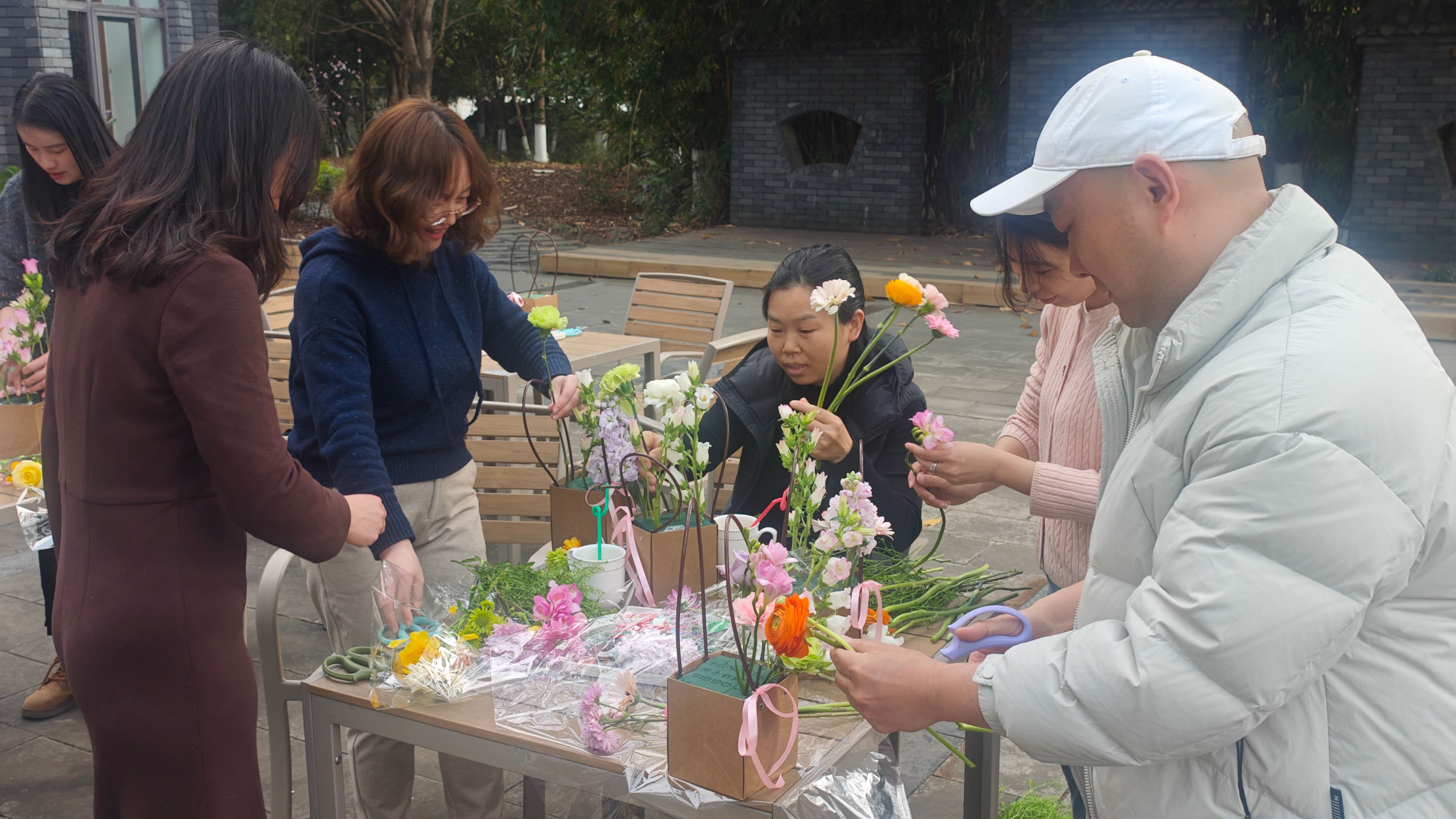 插花环节是本次活动的亮点,工会特别邀请了专业花艺老师现场指导。花艺老师详细讲解了插花的基本技巧、花材搭配、色彩搭配以及养护知识,从花材的修剪、固定到整体造型的设计,耐心地为大家示范讲解,手把手指导女教职工们进行创作。老师们认真聆听、积极尝试,挑选心仪的花材,修剪枝叶、搭配色彩,发挥自己的想象力和创造力,将原本普通的鲜花,搭配成一盆盆错落有致、生机盎然的花艺作品。