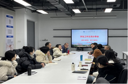 为全面总结和交流先进班集体创建活动的经验和成果,提升学工管理能力,提高班级建设水平,电气工程学院与建筑工程学院于2026年1月5日在数字经济大楼开展了学生工作交流分享会。会议围绕“多维度赋能班级建设”主题,聚焦舆情管理、就业引导、班干培养等共性问题,开展经验分享与案例研讨。两院分管学工负责人及辅导员共17人参会。