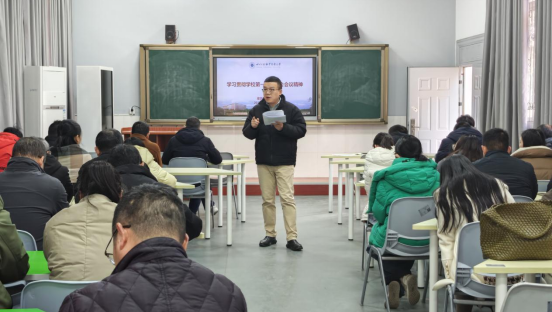 1月13日,学院召开全体教职工大会,专题学习学校第一次党代会精神。会议由学院党委负责人曾令俊主持。