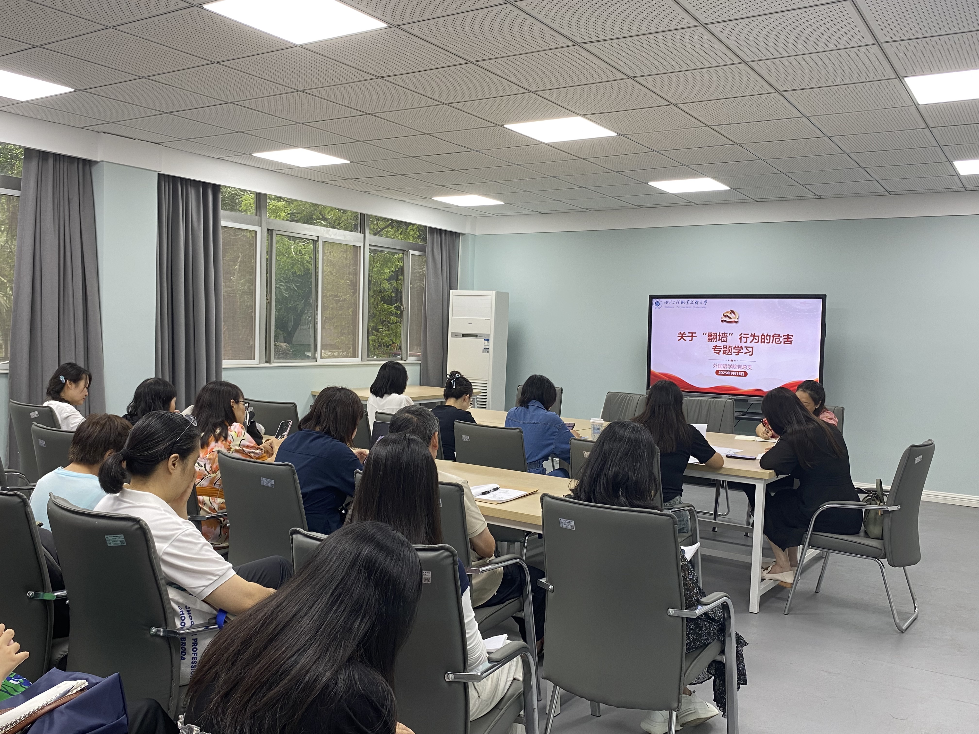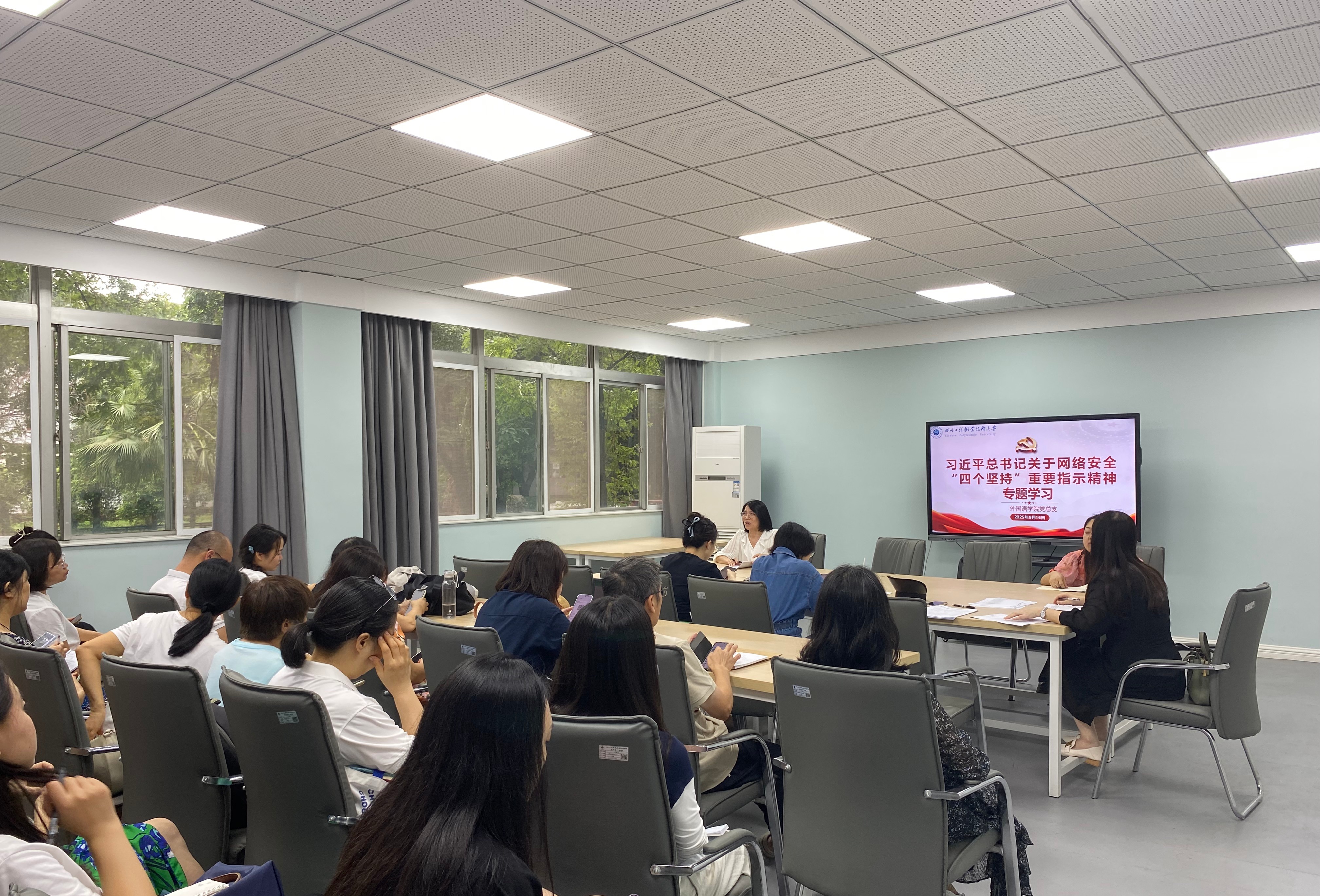 为深入学习贯彻习近平总书记关于网络强国的重要思想,落实学校2025年国家网络安全宣传周活动安排,9月16日下午,外国语学院党总支在105会议室举行专题学习会,面向全体教职工开展网络安全法规宣讲与“翻墙”案例警示教育。会议由党总支分管负责人杨君主持。