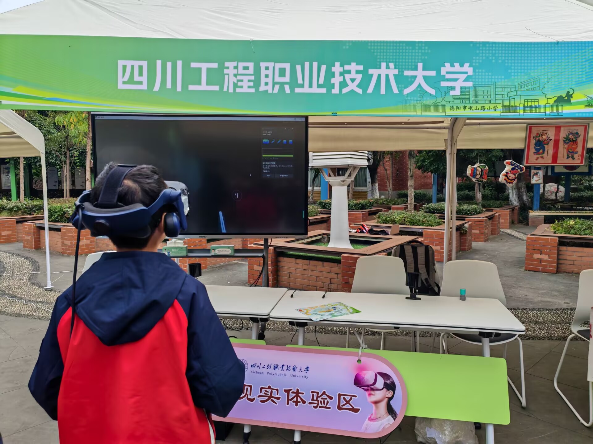 四川工程职业技术大学受邀参加此次科普活动,为活动注入浓厚的科技氛围和专业内涵。智能制造产业学院学生携带VR(虚拟现实)设备走进校园,为岷山路小学的同学们带来了一场别开生面的科技启蒙盛宴。